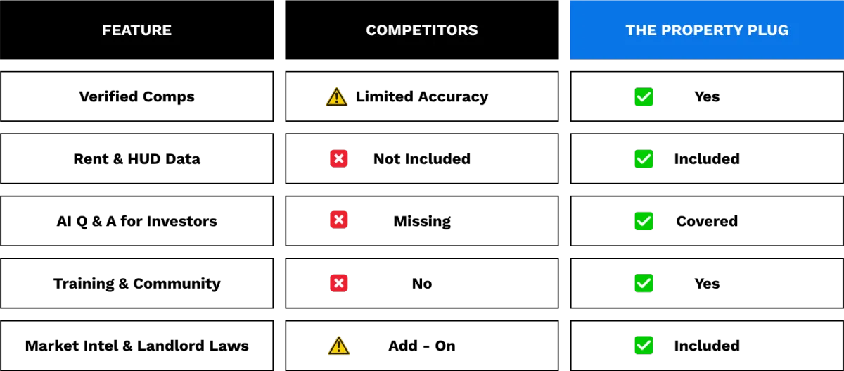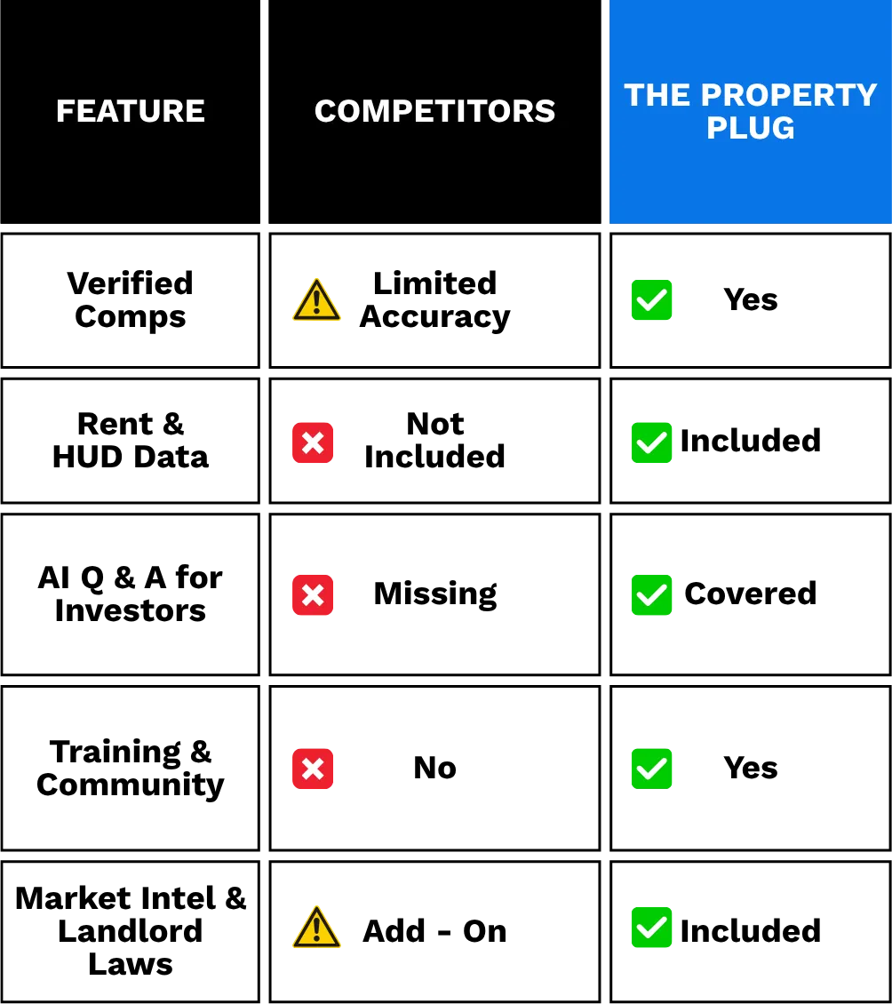 One wrong deal can cost you $15K+. The Property Plug costs less than 1% of that and protects your time, money, and peace of mind.